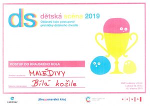 Dne 16.3.2019 se naši žáci literárně dramatického oboru zúčastnili oblastního kola postupové přehlídky dětského divadla v SVČ Lužánky Brno. Skupina mladších dětí postoupila do krajského kola.