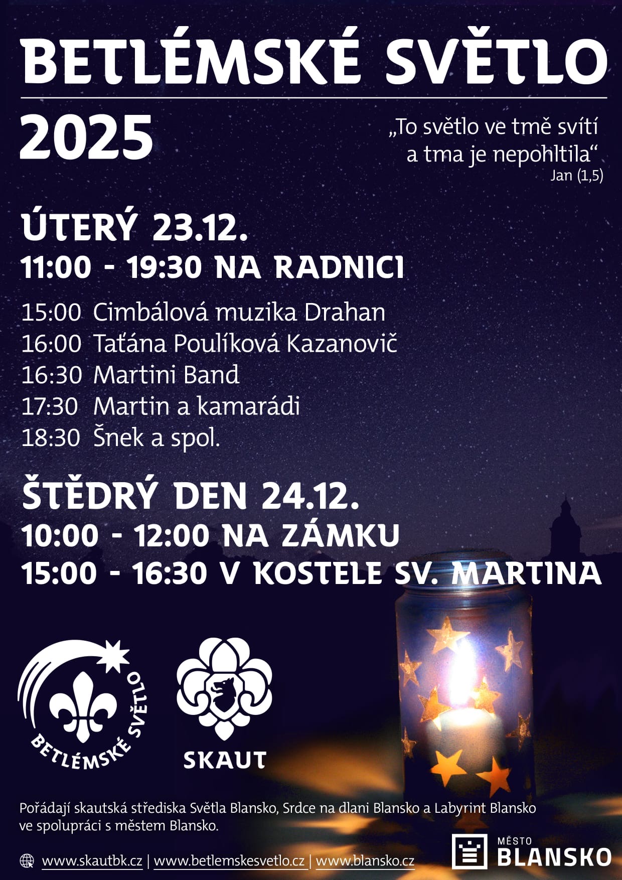 Malé pozvání na hodinový koncert naší Cimbálové muziky Drahan při příležitosti krásného svátečního odpoledne a rozdávání Betlémského světla na radnici v Blansku.