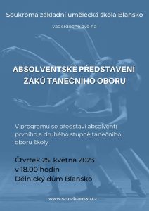 Soukromá základní umělecká škola Blansko, všechny srdečně zve na II. ABSOLVENTSKÝ KONCERT žáků hudebního oboru školy. 10. května 2023 v 17.00 hodin, Dělnický dům Blansko, sál S2. Vystoupí absolventi ze tříd vyučujících: Márie Bikárové, Terezy Vorbové, Martina Šrubaře. Chci vědět více »