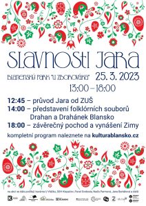 V sobotu 25.3.2023 můžete zhlédnout Folklorní soubor Drahánek s cimbálovou muzikou Drahan za spolupráce Literárně dramatického oddělení Soukromé ZUŠ Blansko na druhém ročníku blanenské akce s názvem Slavnosti jara Folklorní soubor Drahánek zde vystoupí se dvěma tematickými pásmy Otvírání studánek a Vynášení smrtky. Těšíme se na vás 😊 Chci vědět více »