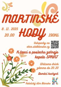 Martinské hody v Blansku jsou součástí tradičních oslav „Vítání sv. Martina“, které letos proběhnou od 7. do 9. listopadu 2025 a nabídnou historický průvod, jarmark i hudební program. Samotné hody v Katolickém domě Blansko se uskuteční v sobotu 8. listopadu 2025. Náš Folklorní soubor Drahan Blansko zde vystoupí, tak jako v předešlých letech, ve dvou […] Chci vědět více »